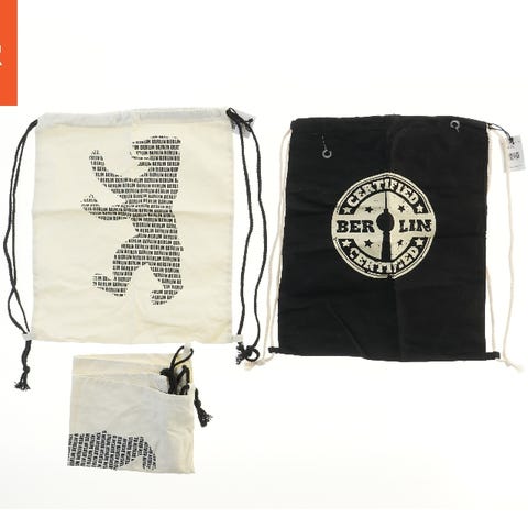 Sættet indeholder tre gymnastikposer i forskellige designs. To poser er lyse med print af en bjørnesilhuet dannet af ordet 'Berlin' gentaget flere gange. En pose er sort med et rundt 'Certified Berlin' motiv. Poserne har snore til lukning og bæreevne. Størrelsen på hver pose er 35,5x42,5 cm.