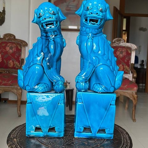 Et par terracotta-heste fra Italien i fremragende stand, målene 40 × 40 × 16 cm, ikke underskrevet, minder om Zaccagnini. Klik på den blå "gå til varen" knap, for at købe eller byde på denne vare. Den samlede pris vil blive vist inden du afgiver dit bud.
