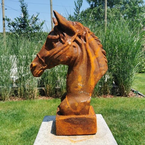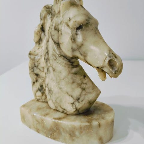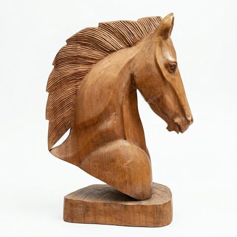 Dette smukke hestehoved i polyresin er et unikt kunstværk af sin slags, perfekt til at berige indretningen i dit hjem eller på dit kontor. Fremstillet med stor omtanke for detaljer fanger denne skulptur essensen af hestenes skønhed og elegance.