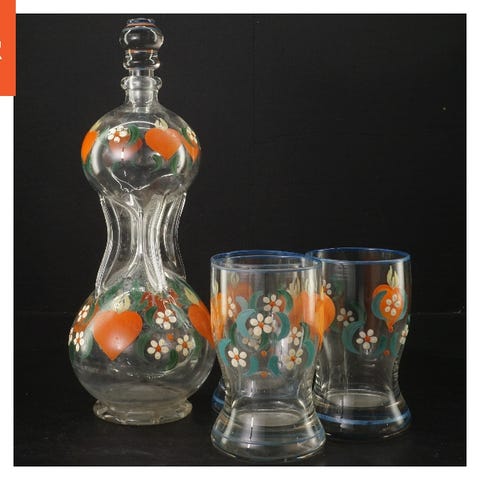 Sæt bestående af 30 små glas som midtpunkt, struktur i Sheffield-metala og træbund, dimensioner 40 × 17 × 22 cm, vægt 2374 g, produceret i Det Forenede Kongerige og i fremragende stand med mindre brugsspor. Klik på den blå "gå til varen" knap, for at købe eller byde på denne vare. Den samlede pris vil blive vist inden du afgiver dit bud.