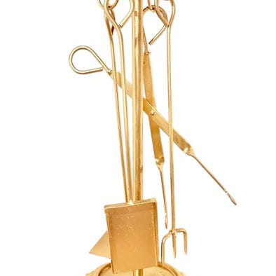 ildstelsæt, lavet af jern / kobber med stativ, kost, skovl, tang og poker, .