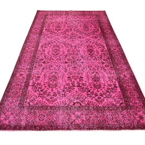 Håndvævet vintage tæppe i uld på bomuld, lyserød, 155 x 285 cm, model Pink vintage, i meget god stand, professionelt rengjort, med certifikat. Klik på den blå "gå til varen" knap, for at købe eller byde på denne vare. Den samlede pris vil blive vist inden du afgiver dit bud.