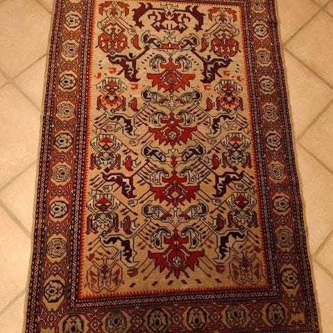 • Materiale og knude-teknik: Traditionelle tæpper af denne type er håndknyttede af uld.