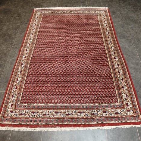 Et håndvævet Sarough Mir tæppe fra Indien, lavet af uld på bomuld, måler 180 × 120 cm, dateret fra slutningen af det 20. århundrede, i god stand, med ægthetscertifikater. Klik på den blå "gå til varen" knap, for at købe eller byde på denne vare. Den samlede pris vil blive vist inden du afgiver dit bud.