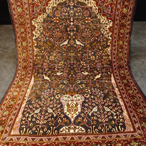 Venligst betragt tæppet med tålmodighed og opmærksomhed. Hvert håndlavet tæppe er i sit mønster, sin skønhed og sin farveharmoni unik og derfor et kunstværk i sig selv.