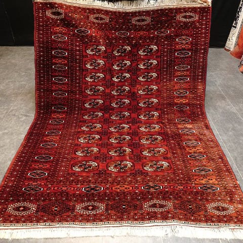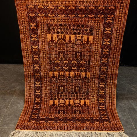 Meget omhyggelig fremstilling af et meget fint tæppe (se foto)