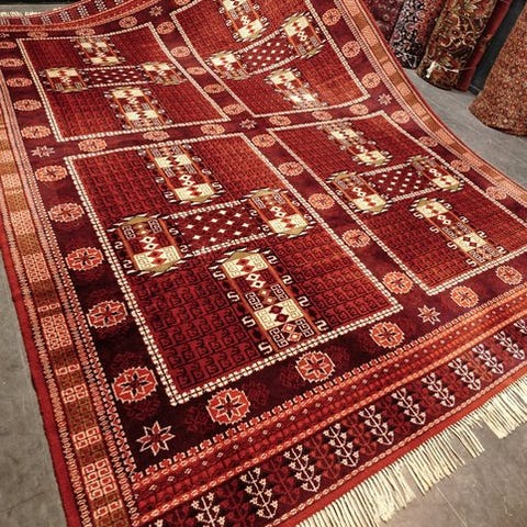 Design inspireret af gamle persiske tæpper, vævet med tyrkisk knude, vegetabilske farver, 140.000 knuder per kvadratmeter, ulden der bruges er håndspunden og kommer fra Afghanistans bjerge, og dens hovedkarakteristika er den store modstandsdygtighed over for slitage sammen med en stor blødhed og sødme. Dette tæppe varierer fra enheden til den i små detaljer. Der findes ikke to tæpper, der er helt ens.