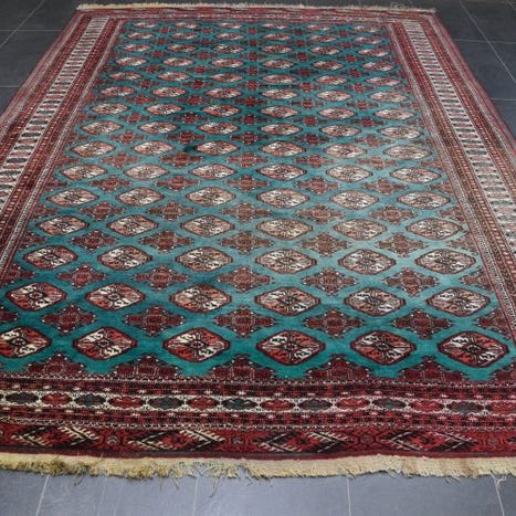 Oprindelsesland: Pakistan; Model Omid; tæppe af uld på bomuld, 233 cm x 165 cm, midten af det 20. århundrede, i meget pænt brug. Klik på den blå "gå til varen" knap, for at købe eller byde på denne vare. Den samlede pris vil blive vist inden du afgiver dit bud.