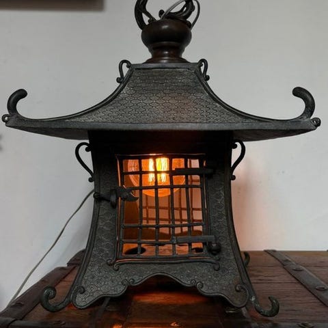Original japansk træfremstillet fem-etagers goju-no-tou pagode-tilbehørsskuffe fra Shōwa-perioden (1926–1989), høj 53,5 cm, bred 19,6 cm, dyb 19,8 cm og vægt 26.920 g, med fem forreste skuffer og en skjult bunddør, solgt uden stativ. Klik på den blå "gå til varen" knap, for at købe eller byde på denne vare. Den samlede pris vil blive vist inden du afgiver dit bud.