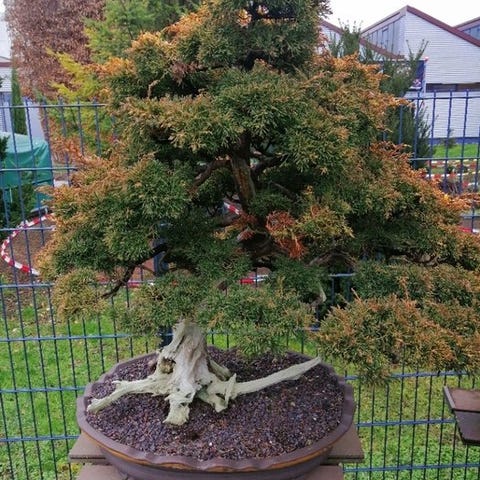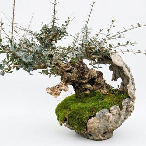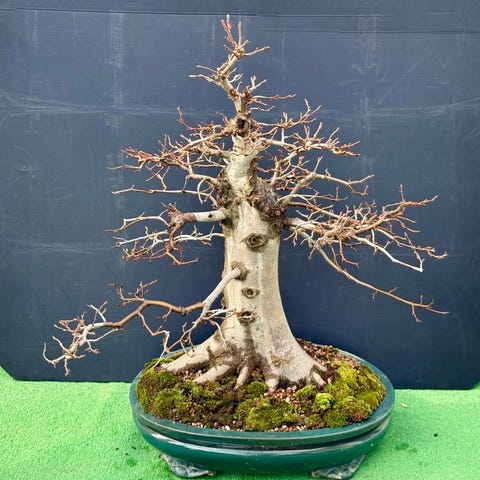 Nebari (Rødder): Har et meget kraftigt udsat rotsystem, der omfavner delvist klippeelementer, hvilket giver udseende af et hundreåret træ i naturen.