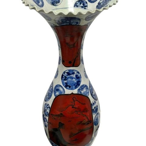 Vase - Porcelæn, Kinrande Rød og Hvid plommeblomst-design Gul og Hvid Vase - ...
