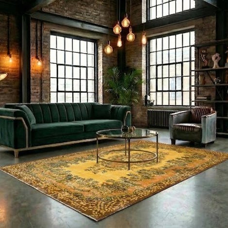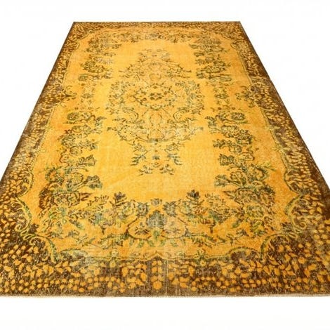 Oprindelsesland Tyrkiet, model Yellow 'Gold' vintage tæppe, uld på bomuld, 250 cm × 170 cm, i meget god stand og professionelt renset. Klik på den blå "gå til varen" knap, for at købe eller byde på denne vare. Den samlede pris vil blive vist inden du afgiver dit bud.