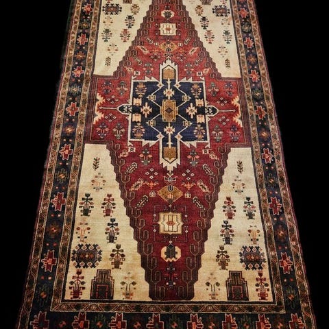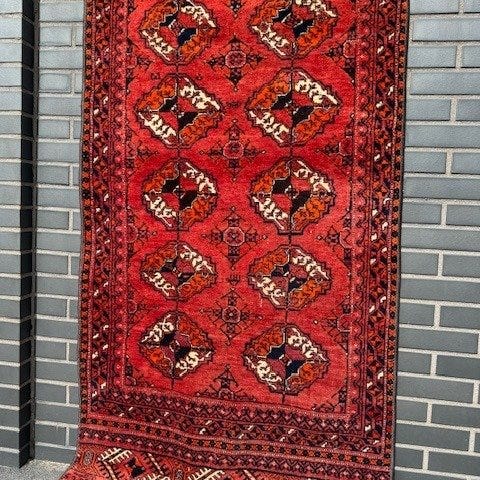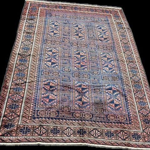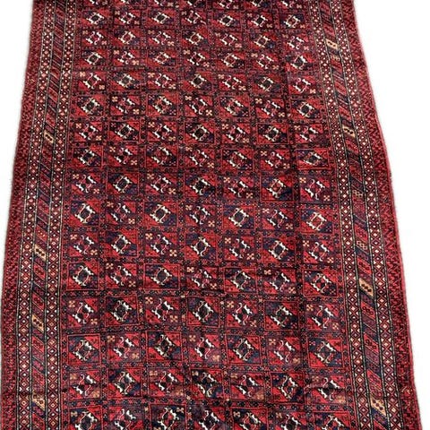 Et håndknyttet orientalsk tæppe ved navn Belutsch tilbydes.