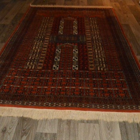 Oprindelsesland Tyskland; Model Buchara; Mål 300 × 200 cm; Materiale: uld på bomuld; Farve brun; Fremstillet i slutningen af det 20. århundrede; Tilstand: i god generel stand med alders- og brugsspor. Klik på den blå "gå til varen" knap, for at købe eller byde på denne vare. Den samlede pris vil blive vist inden du afgiver dit bud.