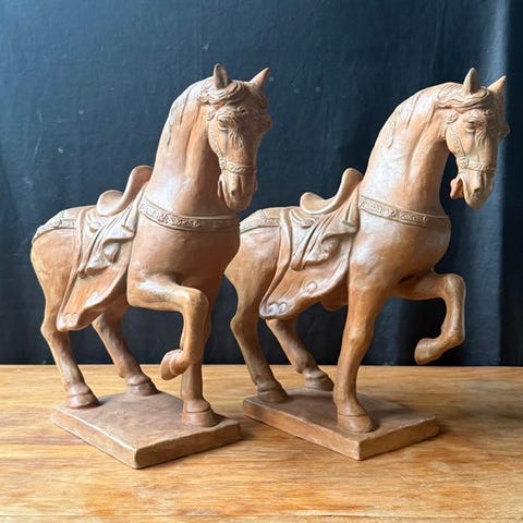 Par turkis glaseret keramiske Hundeskulpturer af Fho i Pop Art-stil, fra Kina, signaturfri, 11 cm bred, 33 cm høj, 9 cm dyb, i fremragende stand. Klik på den blå "gå til varen" knap, for at købe eller byde på denne vare. Den samlede pris vil blive vist inden du afgiver dit bud.