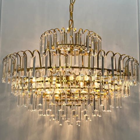 Swarovski - Lysekrone (2) - Krystal, Bladgoud