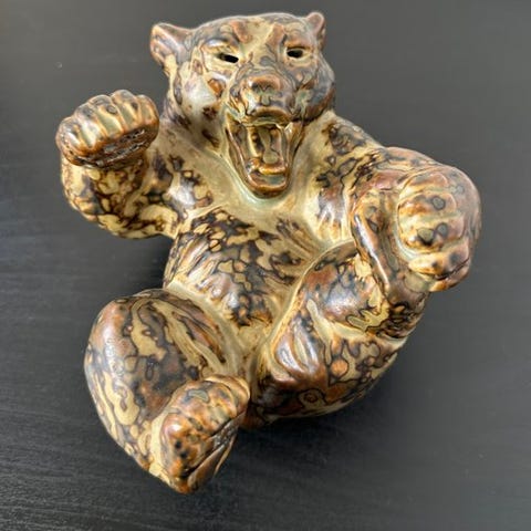 Knud Kyhn er særligt hyldet for sine dyrefigurer, og denne bjørn fanger hans karakteristiske organiske stil og detaljeringsgrad. En meget samlervenlig genstand for elskere af skandinavisk design og Royal Copenhagen-porcelæn.