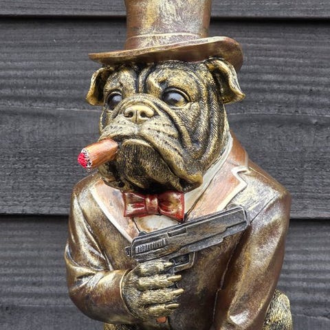 Denne metalfigur er en unik pynteting, der perfekt vil forbedre enhver samling. Omhyggeligt fremstillet af materialer af høj kvalitet, imponerer den med sit imponerende udseende og sin sans for detaljer. Dens dimensioner gør den ideel som dekoration på en hylde, kommode eller udstillingsskab. Den kan også placeres på en balkon, terrasse eller pavillon..