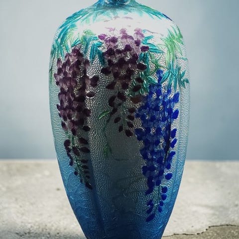 Vase - Emalje, Sølv, En cloisonné-vasje med en turkis bund dekoreret med blom...