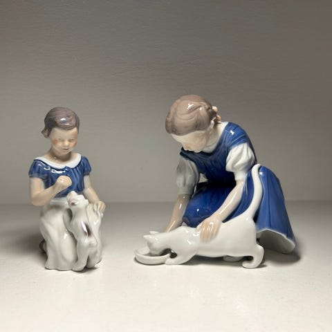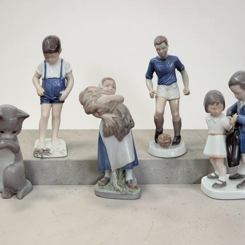 Set på 4 porcelænsfiguriner fra Danmark af Royal Copenhagen og Bing & Grondahl, dateret til 1970–1980, i fremragende stand. Klik på den blå "gå til varen" knap, for at købe eller byde på denne vare. Den samlede pris vil blive vist inden du afgiver dit bud.