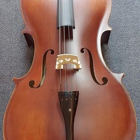 Det er et fuldstørrelse cello (samlet længde: 121,2 cm, krop: 75,9 cm, øverste buer: 33,1 cm; midterbuer: 23,8 cm; nederste buer: 44,1 cm) med label: