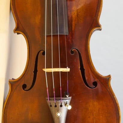 Du har her muligheden for at købe en gammel violin med mærkat.