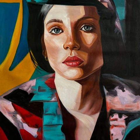 Gennem en syntese af realisme og kromatisk abstraktion forvandler Ferran portrettet til