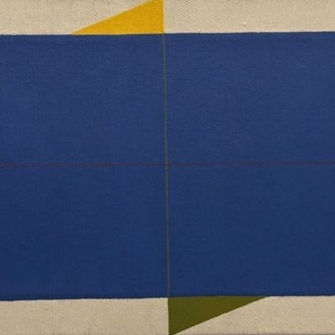 Vanni Viviani "L'ebbrezza del triangolo" 1983. Akryl på lærred, cm 60x80. Værket underskrevet. Ægthed på foto.