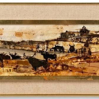 "Les blés à Branville" er et ikonisk værk af Maurice Savin, hvor kravet til komposition møder lysets blødhed i den normandiske natur. Dette landskab af høst er ikke blot et bucolisk udsyn; det er en mesterlig undersøgelse af farvekontraster. Den gyldne gyldne farve i sædskoven, bearbejdet med en næsten håndgribelig densitet, svarer til de blålige skygger i buskene og skaber en beroligende, solfyldt dybde.