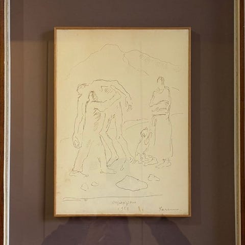Tegning. Kommer fra kunstnerens udstilling i Padova. Håndsigneret.