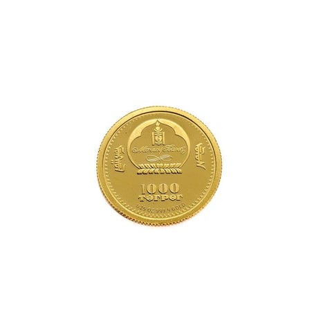 Mongoliet moderne verdensmønt (ikke euro-mønter efter 1960), guld, proof, vægt 1,24 g, fineness .999, diameter 13,92 mm, 2003 Chinggis Khan – 1/25 oz. Klik på den blå "gå til varen" knap, for at købe eller byde på denne vare. Den samlede pris vil blive vist inden du afgiver dit bud.