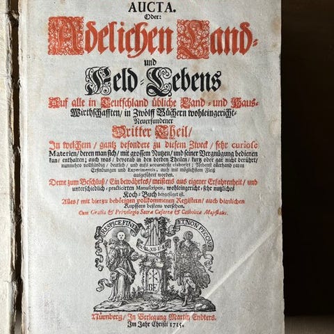 Franckfurt [Frankfurt] og Leipzig: I den Regnfulde Boghandel, 1730. [31], 746, [13] sider. 16,7 cm x 10,3 cm. Halvhæftet binding med brune prikkede plader, en ryg med 4 hævede bånd, og pibede kanter. Andet udgave af “Vernünfftige Gedancken von dem Gebrauche der Theile in Menschen, Thieren und Pflanzen" (Rationelle tanker om brugen af delene i mennesker, dyr og planter), et grundlæggende værk i den tyske oplysningstid, der anvender rationalistisk filosofi på biologi. Medfølger et gravurefrontispiece samt gravurede head-/ tailpieces og