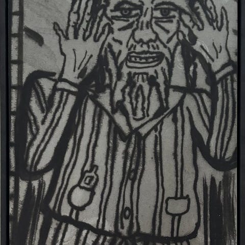 Værket selv 70 x 50 cm og med ramme 90 x 70 cm.