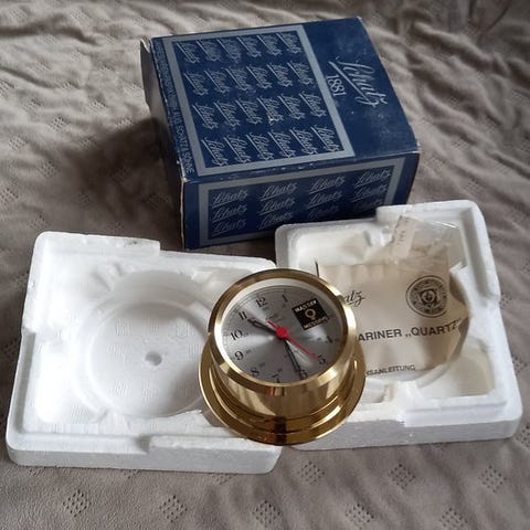 NHE maritimt ur fra 1980’erne i en 22 cm glas- og stålhus, med batteridrevet urværk, 400 dages gangreserve, ikke slagværk, i god brugt stand med let ældning, japan. Klik på den blå "gå til varen" knap, for at købe eller byde på denne vare. Den samlede pris vil blive vist inden du afgiver dit bud.