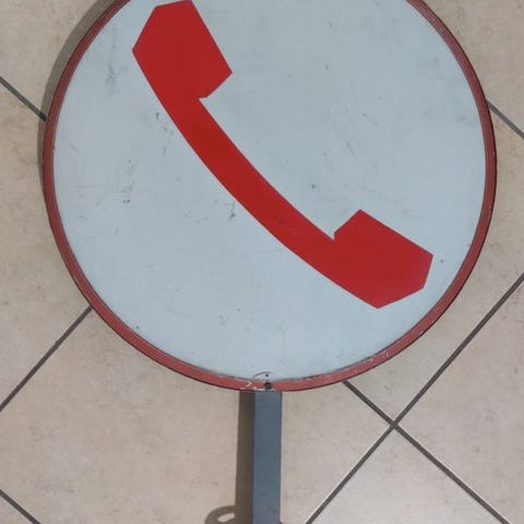 Dobbeltsidet serigraferet telefonreklameskilt, fra 70'erne/80'erne, disse skilte var placeret på telefonboksene eller i lokaler der havde en offentlig telefon. Perfekt for samlere og entusiaster af genren.