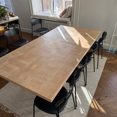 Bordet på billederne er: 40mm massivt Italiensk egetræ med naturkanter. Kvaliteten er meget høj.
