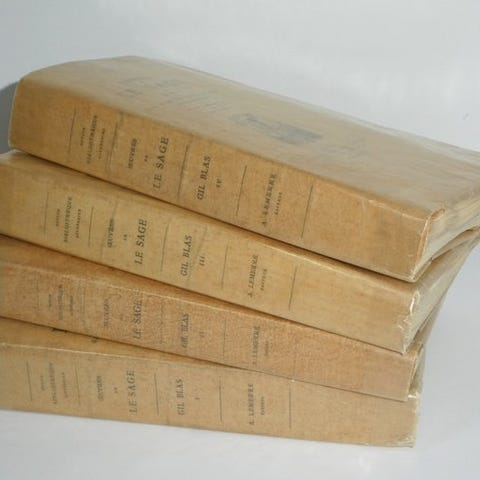 4 bind i 8vo (210x130 mm), fuldt brunt kalveskindsbinding, gyldne fileter i rammerne omkring forsidepladerne, ryg med nerver og ornamentik, gyldne snit (bindingsværket fra tiden signeret Hering og Muller). Slid og slidmærker på rygge og nerver, første forbindelseshjørne på bind I delvis sprækket, flere stempelmærker. Indvendigt frisk, nogle blege pletter.