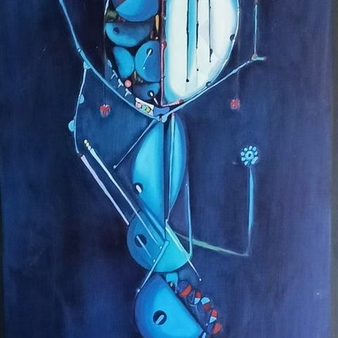 Originalt akrylmaleri af Simeon Gonzales (født 1973), titel PECES DEL PAITITI, 120 x 100 cm, håndsigneret af kunstneren, dateret mellem 2010 og 2020, i fremragende stand, oprindelse Norge, moderne stil, med certifikat for ægthed. Klik på den blå "gå til varen" knap, for at købe eller byde på denne vare. Den samlede pris vil blive vist inden du afgiver dit bud.