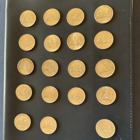 Et lot på 20 sølvmønter á 500 lire Caravelle fra Den Italienske Republik, dateret 1958–1970, inklusive de sjældne numre fra 1968–1970, i høj konserveringsgrad (BB/SPL til FDC). Klik på den blå "gå til varen" knap, for at købe eller byde på denne vare. Den samlede pris vil blive vist inden du afgiver dit bud.