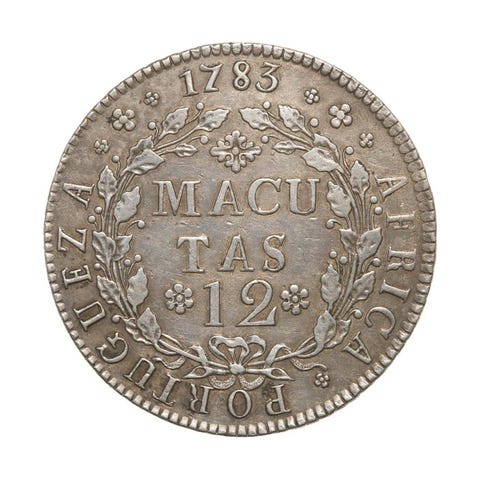 En sølvmønt på 320 Reis (Pataca) fra Braziliens koloniale periode, præget i 1788 under D. Maria I, vægt 9,13 g, diameter 30,04 mm, Coroa Alta. Klik på den blå "gå til varen" knap, for at købe eller byde på denne vare. Den samlede pris vil blive vist inden du afgiver dit bud.