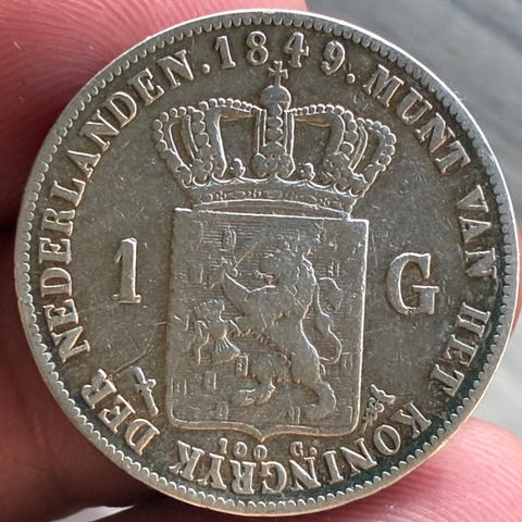 Særdeles smuk 1 gylden sølvmønt fra Willem I, 1832, i meget flot stand og ikke certificeret. Klik på den blå "gå til varen" knap, for at købe eller byde på denne vare. Den samlede pris vil blive vist inden du afgiver dit bud.