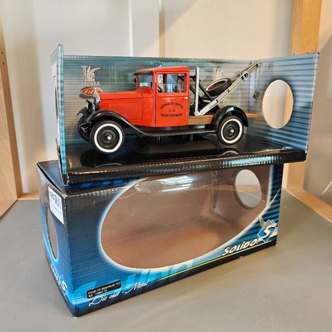 Dette er en 1:18-skala model af en Mercedes-Benz G4 (W31) fra 1938, produceret af Signature Models. Modellen leveres med detaljerede figurer, herunder en figur i en SS-uniform, og karakteristiske røde flag på skærmene ved hjulene.