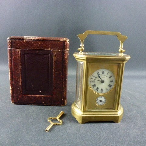 Officerspendel rejseluar i mahognikasse med bronzeornamenter, mekanisk værk med 8-dages strømreserve, emaillering uret, signeret COUSIN, i god stand. Klik på den blå "gå til varen" knap, for at købe eller byde på denne vare. Den samlede pris vil blive vist inden du afgiver dit bud.