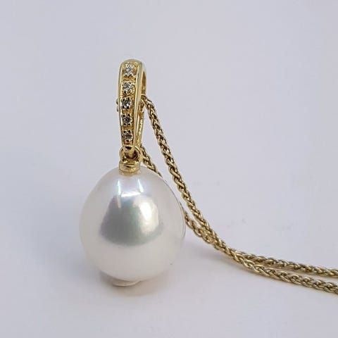 Halskæde - 14 karat Hvidguld, 11×13,7 mm runde South Sea, Tahiti- og Edison-p...