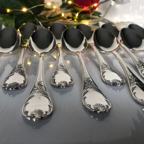 - 9 kaffelepels (1 ekstra på grund af én med lidt misfarvning)