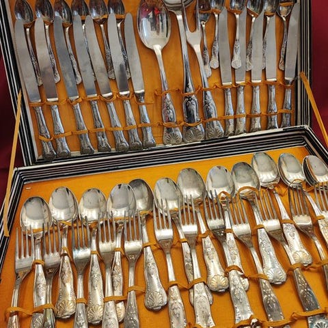 Et sæt med stor effekt og sjældenhed, næsten komplet: mangler kun en lille gaffel, en minimal detalje i forhold til lottets samlede rigdom.