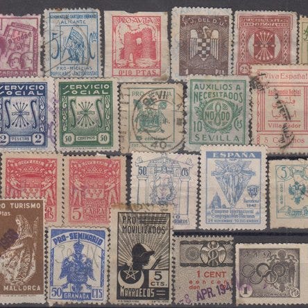 Tre albums med en komplet samling af spanske frimærker fra 1965 til 1995 i ubrugt uden gum, monteret på Filabo-ark i tre albums. Klik på den blå "gå til varen" knap, for at købe eller byde på denne vare. Den samlede pris vil blive vist inden du afgiver dit bud.