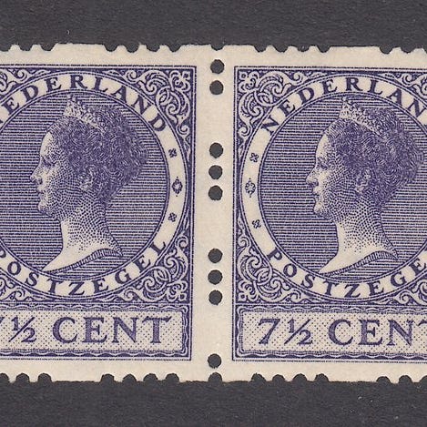 Oprindelse Nederlandene, titel Tweezijdige roltanding, år 1925, NVPH R1/R18, postfrisch med originalgummi, komplet serie uden vandmærke, attest fra H. Vleeming (07-11-2025). Klik på den blå "gå til varen" knap, for at købe eller byde på denne vare. Den samlede pris vil blive vist inden du afgiver dit bud.