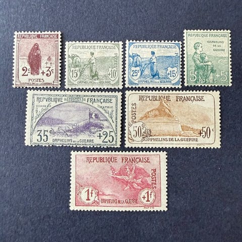 Frankrigs oprindelse; Orphelins numre 148–151, friske uden gum, alle underskrevet Calves, fra 1918, Yvert-kataloget. Klik på den blå "gå til varen" knap, for at købe eller byde på denne vare. Den samlede pris vil blive vist inden du afgiver dit bud.