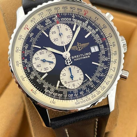 Breitling Navitimer Automatic 41, reference A17326161C1A1, stållcase 41 mm, blå skive, automatisk bevægelse, til herre, produceret 2010–2020, i meget god stand med mindre tegn på slid, stålrem og original spænde, ingen æske eller papirer inkluderet. Klik på den blå "gå til varen" knap, for at købe eller byde på denne vare. Den samlede pris vil blive vist inden du afgiver dit bud.